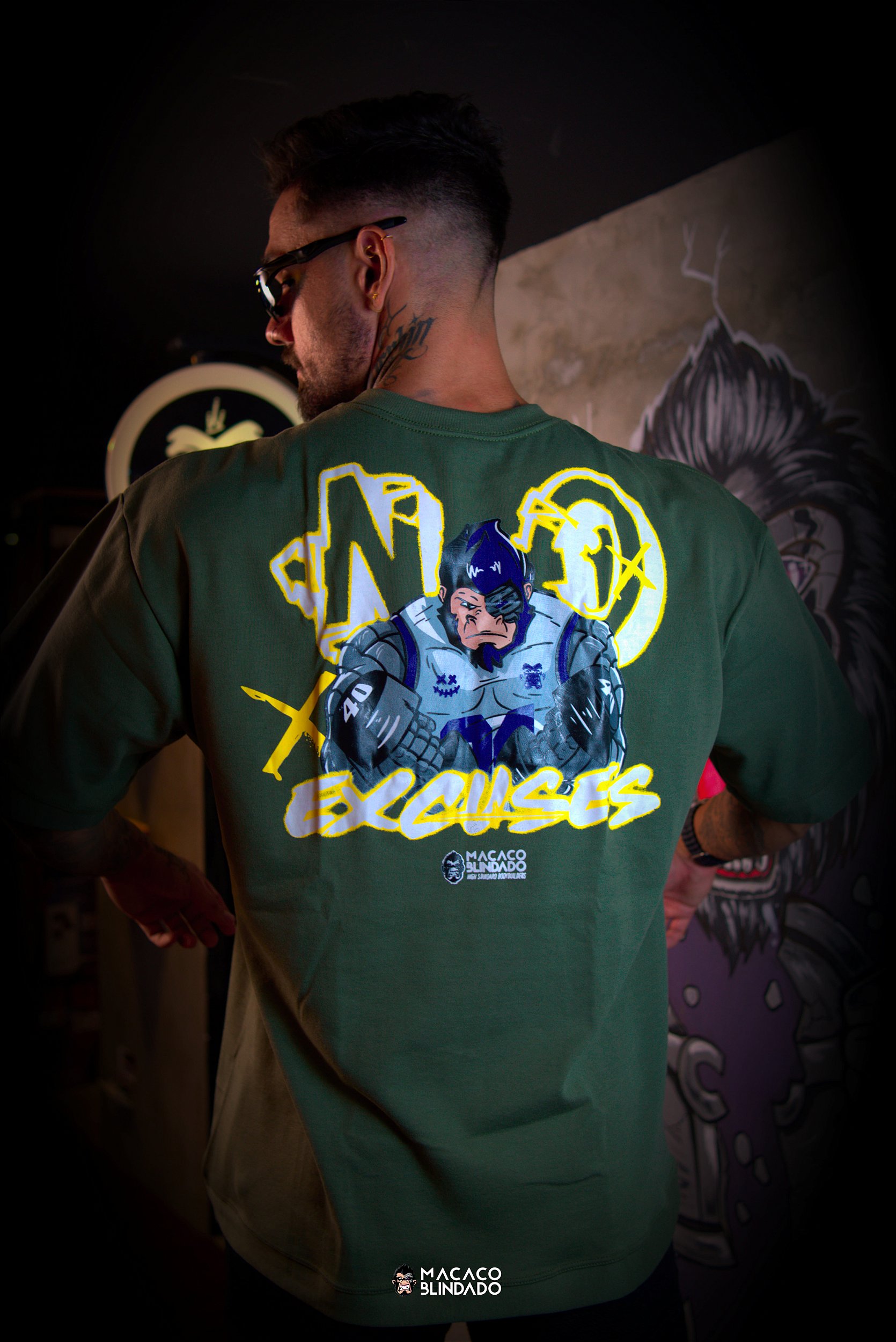 CAMISETA OVERSIZED NO EXCUSES VERDE MILITAR - MACACO BLINDADO