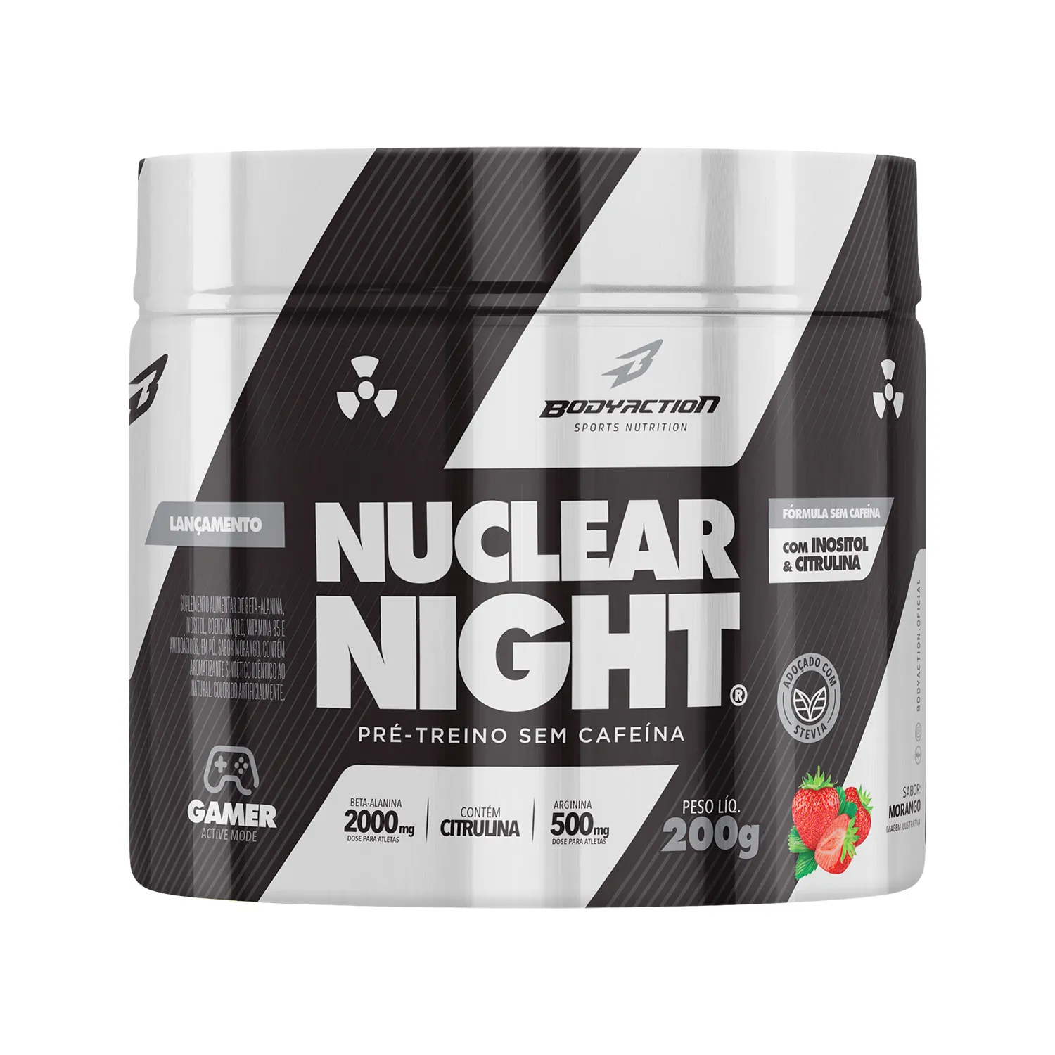 NUCLEAR NIGHT é o mais novo lançamento da marca BodyAction e faz parte da linha “nuclear” da empresa. O suplemento é um pré-treino com uma exclusiva fórmula noturna, ou seja, livre de estimulantes em sua formulação.