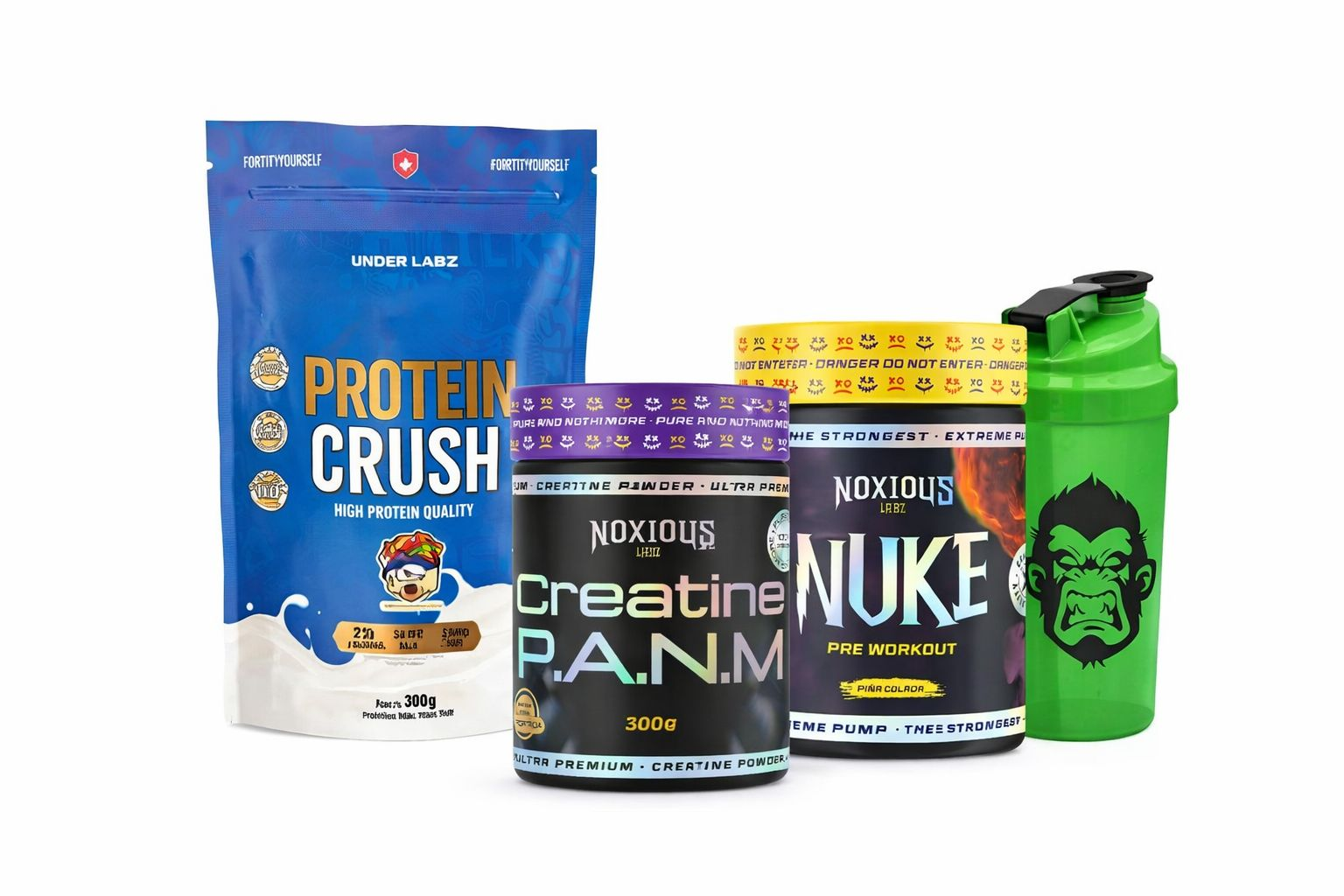 Obs: As cores das Squeezes serão sortidas (Estoque Limitado/Enviadas enquanto durar), assim como os sabores do Nuke, caso deseje escolher algum sabor ou cor, deixe nas observações do pedido que nosso vendedor enviará caso ainda tenha disponível a escolha desejada. O sabor escolhido no combo é da Protein Crush.